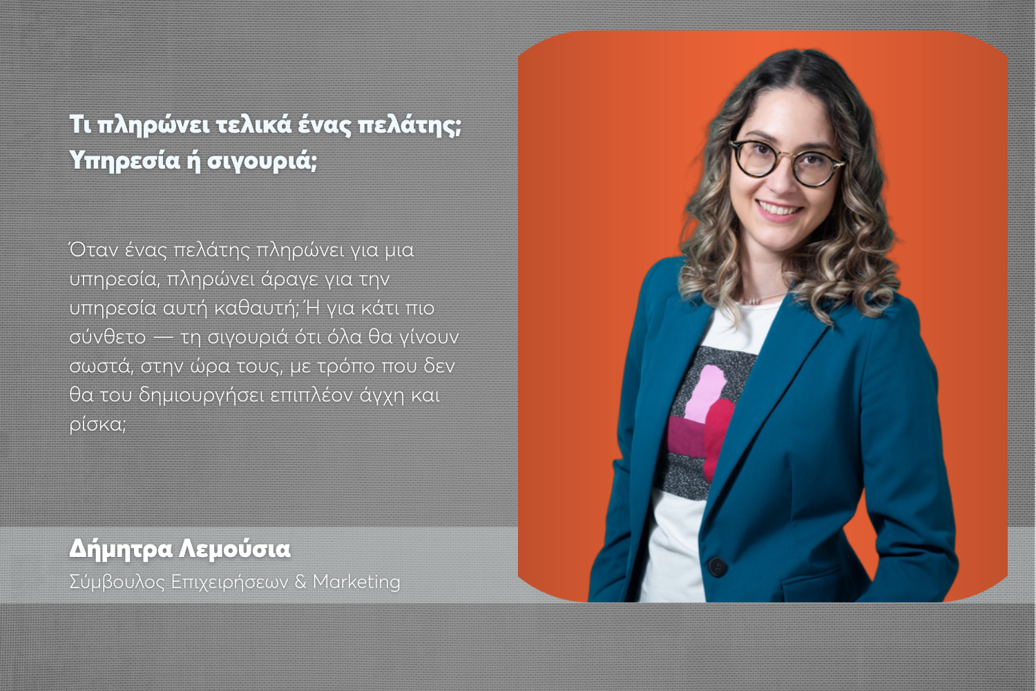 Όταν ένας πελάτης πληρώνει για μια υπηρεσία, πληρώνει άραγε για την υπηρεσία αυτή καθαυτή; Ή για κάτι πιο σύνθετο — τη σιγουριά ότι όλα θα γίνουν σωστά, στην ώρα τους, με τρόπο που δεν θα του δημιουργήσει επιπλέον άγχη και ρίσκα;